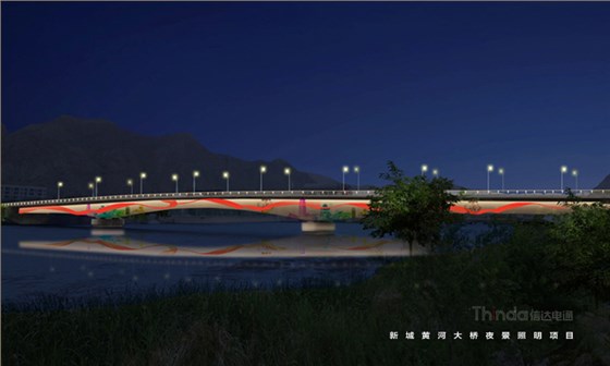 新城黃河橋是蘭州市對外交通西干線的重要樞紐,信達電通采用簡單的照明手法表現橋體的結構,凸顯橋體的敦實與厚重之感。暖黃光與彩繪圖案在橋底相繼呈現,展現大橋的不同形態。
