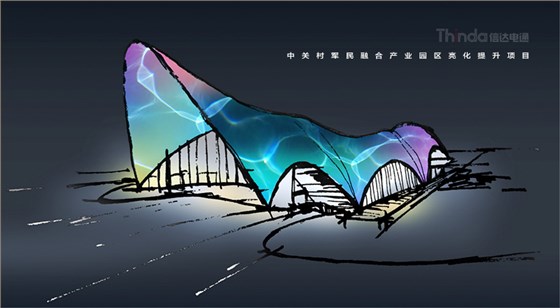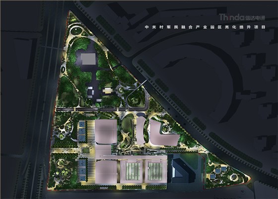 中關村軍民融合產業園區的亮化設計主要以建筑燈光為主體設計方向,用燈光的形式突出建筑結構特點,突出時尚、創新、科技、新潮的融合產業園。園區建筑結構整體簡潔、大氣,信達電通利用光影效果及景觀元素,打造東西、南北軸向的建筑縱身層次,整體以各種幾何形體組合而成,燈光在設計的同時尊重建筑本身的理念,優化夜景氛圍,通過塊與面的結合,塑造一個大氣魄、大追求的文化產業新品牌。
