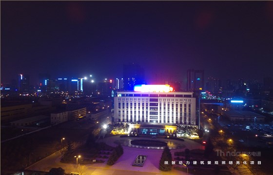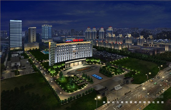 在陜西鼓動(dòng)力的建筑景觀亮化改造中北京信達(dá)電通通過照明的亮度和顏色突出陜鼓動(dòng)力的建筑輪廓,燈具造型和燈光顏色與陜鼓的商業(yè)用途和建筑外觀相結(jié)合,進(jìn)而加強(qiáng)陜鼓的渲染力。