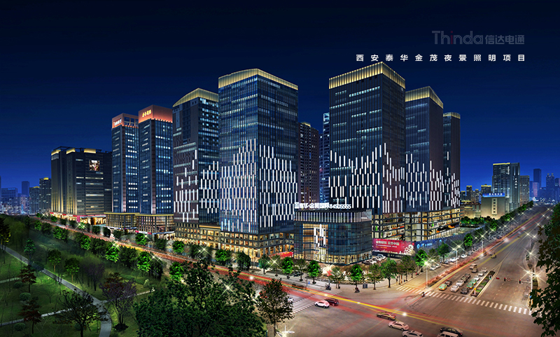 泰華·金貿(mào)國際位于西安高新區(qū)金融圈與商務(wù)圈的交匯地帶,與唐城墻遺址公園僅一路之隔。有西安首創(chuàng)山水云陶筑玻璃幕墻,高端商務(wù)會所,啟封現(xiàn)代商務(wù)的新風(fēng)范。信達(dá)根據(jù)辦公樓的戶外亮化照明設(shè)計(jì)要素和泰華·金貿(mào)國際建筑景觀特點(diǎn)以及所處的地理位置,對泰華·金貿(mào)國際進(jìn)行戶外亮化照明設(shè)計(jì)改造工作。改變了泰華·金貿(mào)國際之前的色系昏暗現(xiàn)狀,增加了建筑的外立面整體效果及廣告照明的效果,洗亮泰華·金貿(mào)國際建筑頂部,凸顯天際效果,使泰華·金貿(mào)國際成為西安夜色下一道亮麗的風(fēng)景。