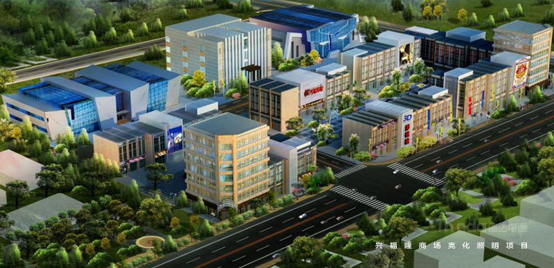 信達設計團隊已對烏蘭察布興福隆商貿城做了整體,全面的現場實勘和初步整理,現已設計出了,實用,高效,節能的方案以供其亮化照明使用。 經過現場實勘,信達設計組,對烏蘭察布興隆商貿城的餐飲區、住宿區、休閑區、娛樂區分別做出了突出其特點而又有相互一致性的設計方案。